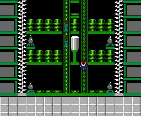 GREEN BEAMS - Takes one hit to knock down - anything on top of it will also come down(make sure a barrel is not above the beam or else the barrel will fall on you and you'll be stuck INSIDE the barrel! If this does happen, press Select to go to the title screen, and press Start to start the game. Don't worry, you'll be in the level you were in.)