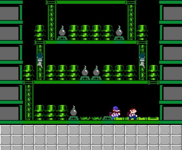 The main object in this game is to break down all the walls. You can control the worker by pressing Left or Right. To climb ladders, press Up and Down. To use your mighty hammer, press A or B.
