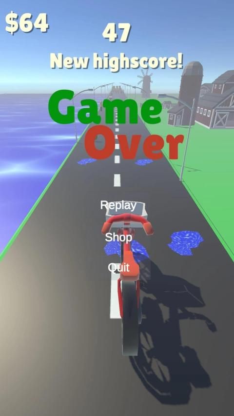 Collect as many coins on the way to school on your bike. Your speed slowly increases as will your points. Don't collide or you will be game over!