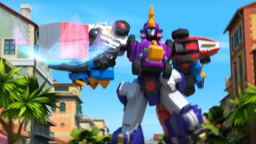 यह डिनो कोर रोबोट साहसिक, जो बुरे लोगों पर हमला करता है