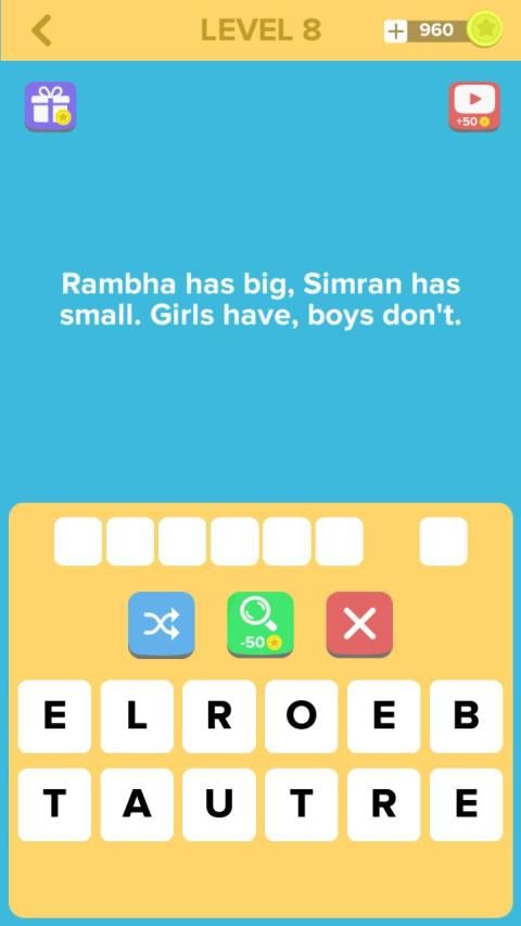 This is a game with some Dirty & cool riddles but with clean answers. This logic riddles game will make you aware of how dirty & slow your thinking is, and lead you to make it clean & perfect. It does not only sharpen your mind also give you enormous fun.