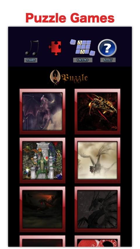 8 Real, high quality puzzles for 3 difficulty level with legendary dragon pictures