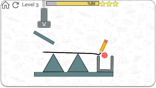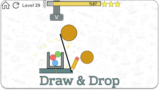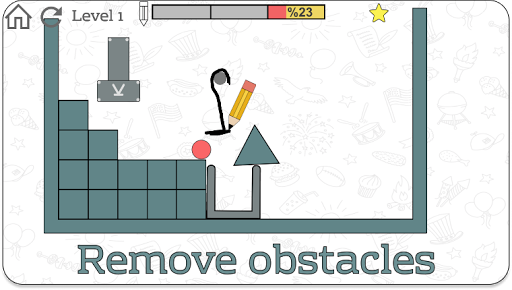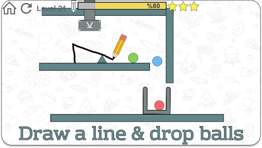 Draw realistic physical line and the goal is to drop red bal and color balls in the basket.