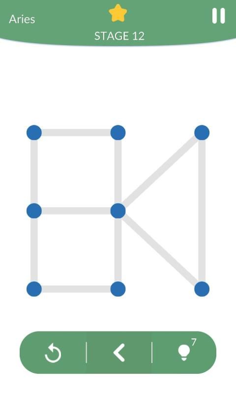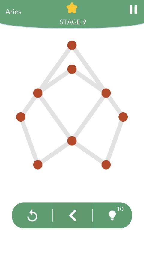 First, you need to choose a dot to start connect, then connect all the dots to complete a geometric figure with one touch, you can't repeatedly draw a same line two times.