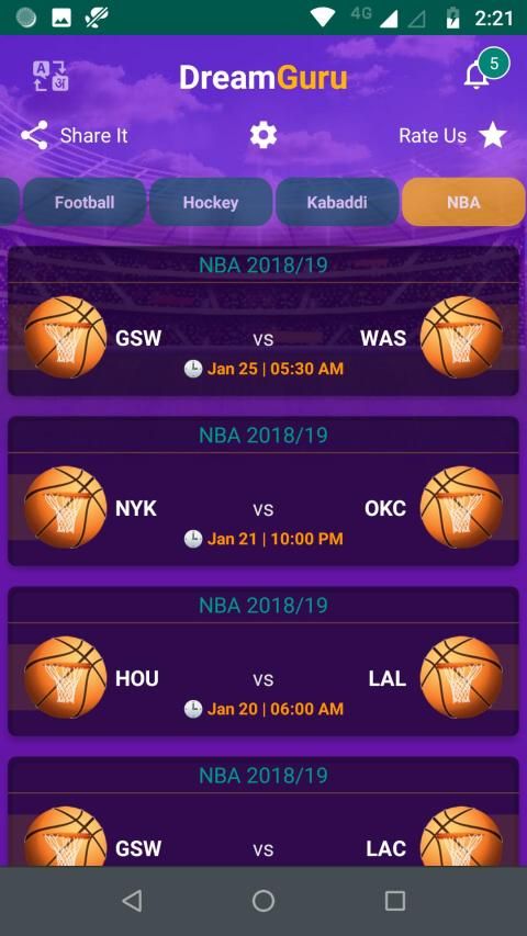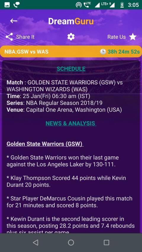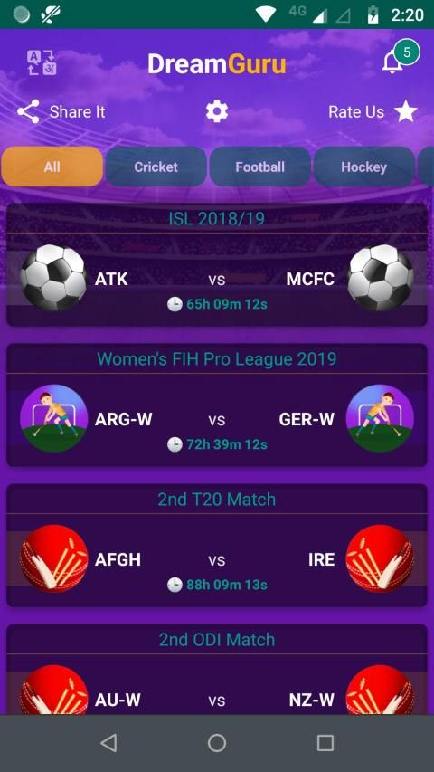 Dream Guru is one of the best app for the Fantasy Matches for Cricket, Football, Kabaddi, NBA and Hockey. Our Dream Guru experts provides you Match Schedule, Team News and Analysis, Full Squads, Playing11 and Predicted Dream Team after detail analysis.