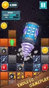• Each type of block has different durability and some of them could stall you for a long time if your drill is not powerful enough. Also, every block has a chance of containing boosters that will repair and refuel your drill or give you more money!