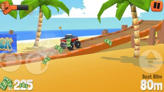 Prove your driving skills in this highly addictive stunt game! Race your monster truck over ramps, collect money and try to drive as far as possible. Perform crazy flips, avoid bombs on the track and complete missions to earn additional cash. Stop by at the garage to upgrade your verhicle and go even farther. Can you achieve a top spot on the leaderboard?