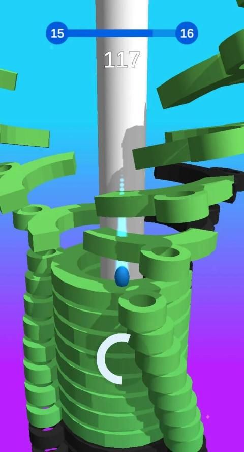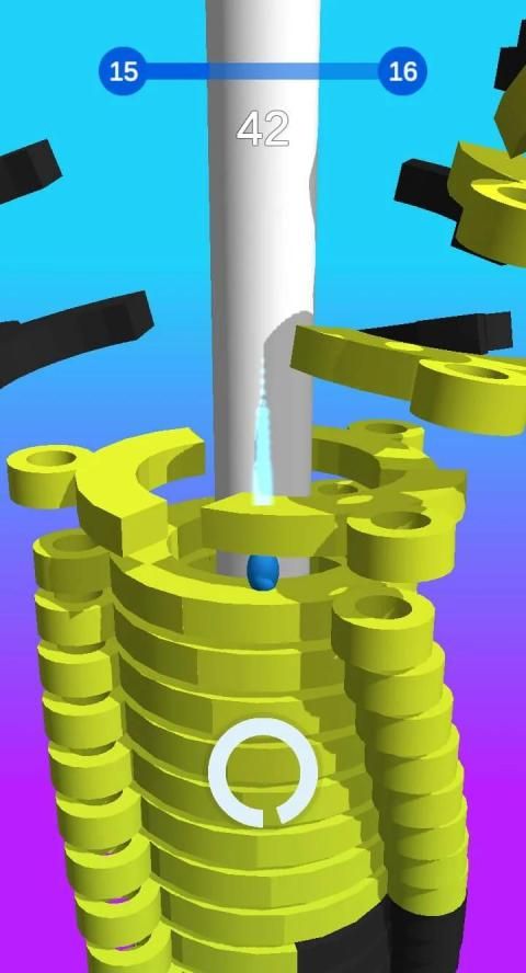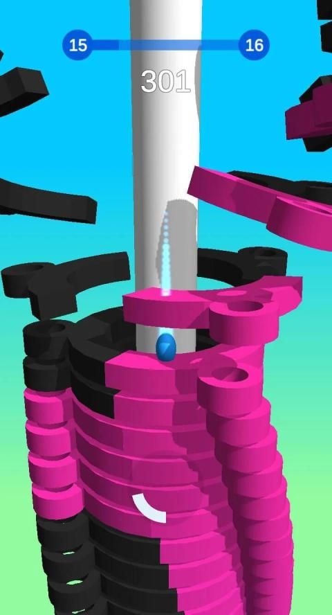 Hold onto the ball as long as possible to get fireball combo to blast through black platforms and reach the end of the stack to achieve victory!