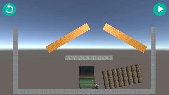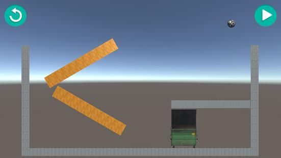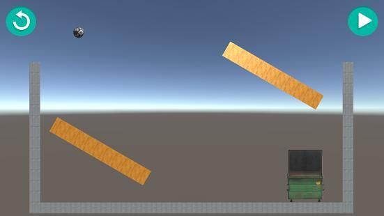 Just drop the ball with play button, move the sticks and try to put the ball inside the dumpster!