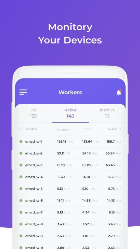 EMCD.IO खनन पूल की टीम ने आपके खनिकों पर नज़र रखने और आपके लाभ का प्रबंधन करने के लिए एक आसान उपयोग ऐप विकसित किया है।