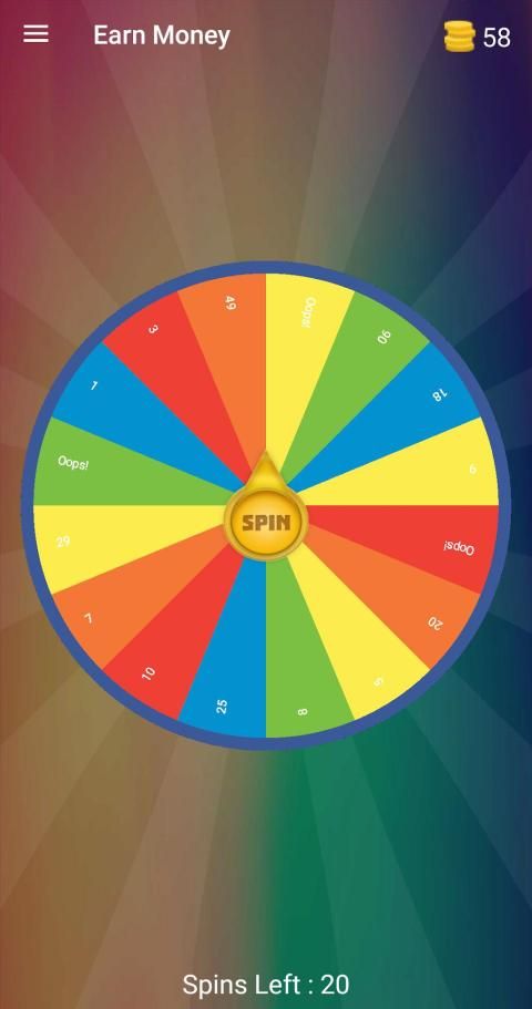 Tap, Spin, and Win FREE Paypal Cash or paytm! Spin for Cash is unlike other types of lucky wheel games because you will never lose! All you have to do is tap on the wheel and earn coins. You can exchange your winning and cash out for Pay Pal cash or paytm. There are also other activities to help you earn more coins such as login daily, sharing our apps, and watch cool videos. If you are looking for a legitimate real money games, this is it. All you have to do is tap and play. Don’t under spin and you can collect your spin wheel prizes soon!