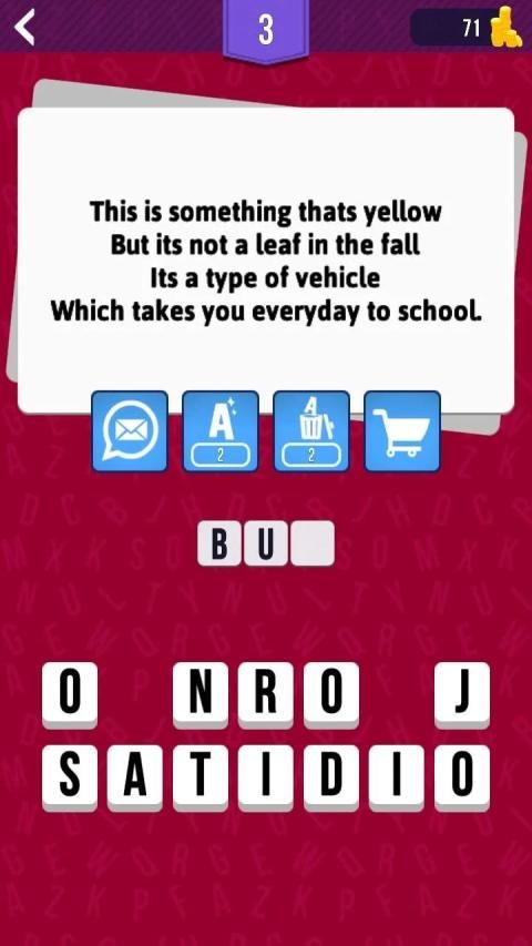 Put your mind to test! Beat the levels by guessing the words hidden behind the riddles.