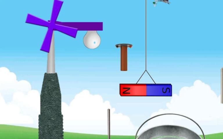 खेल में, एक विंडमिल हिल के एक "चेन रिएक्शन" बल्ब प्रकाश बनाता है, चुंबक चाल है.