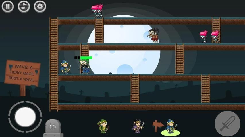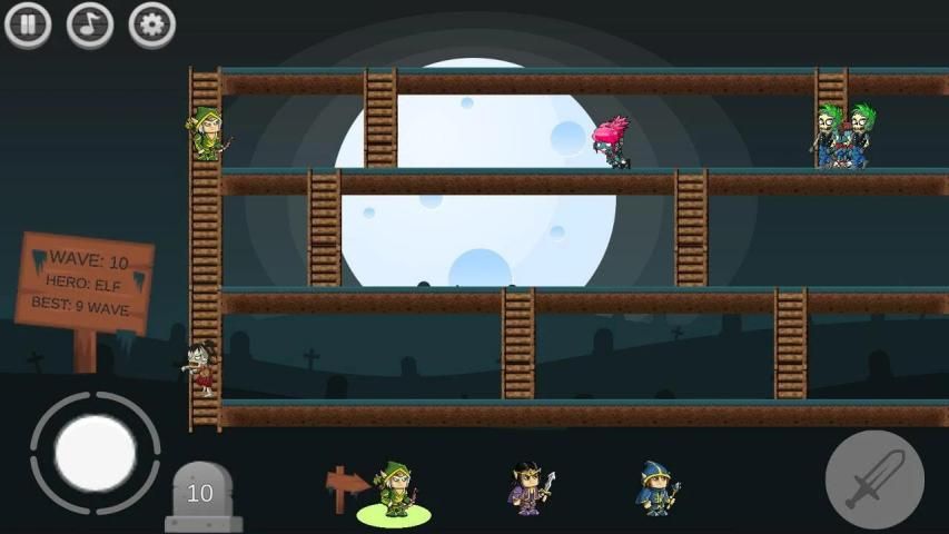 В бою вы должны защитить дорожки от наплыва зомби. Для этого вы можете выбрать одного из трех эльфов, каждый герой обладает своими уникальными навыками.