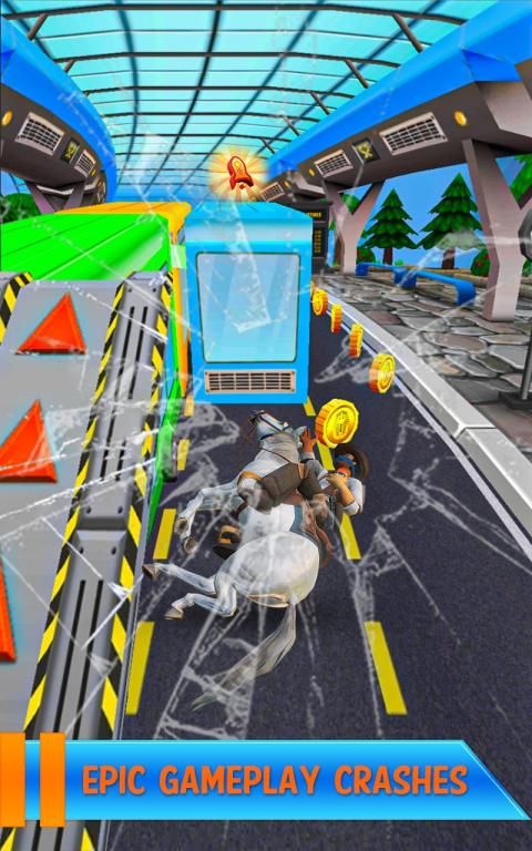 In this infinite runner game, you will become a horse rider and dash your horse through obstacles and slider under the barriers to not get busted. You will have endless ways where you will be riding your horse in the temple, jungle, city and subway environments. You have to survive the dangerous traps and collect jewels, diamonds, and power-ups through the hurdles. Boost up your stamina and rush through the ghost attack who will be chasing you.