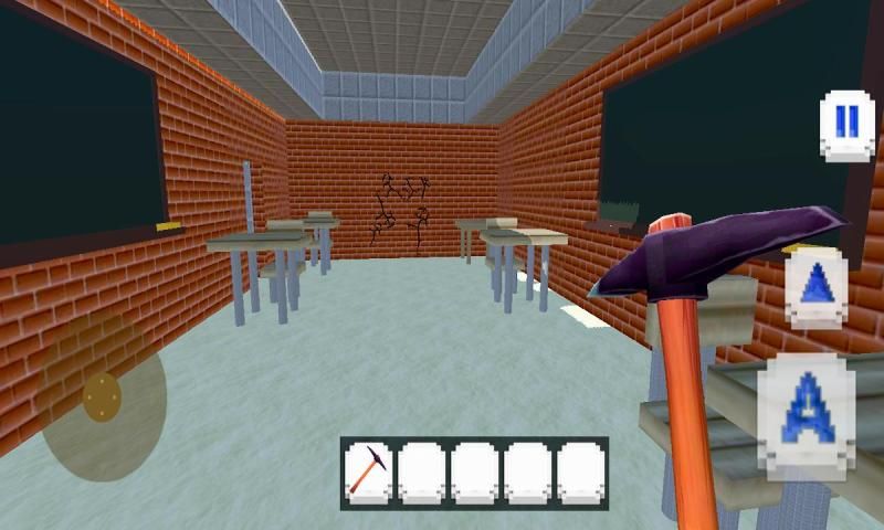 To escape you will need use all your craft skills and searching for objects! You in the cubic world now, so try to find items that will help you escape. Use the pickaxe to destroy the wall. On the blocky world map many useful items.