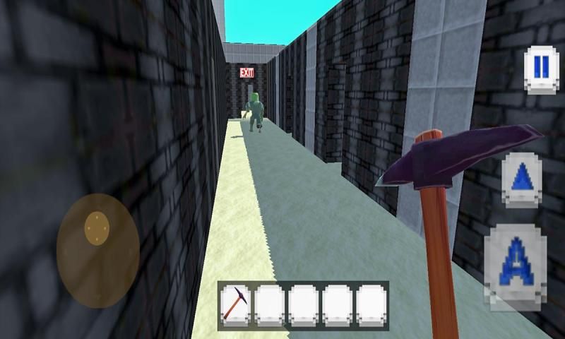 You in the cubic world now, so try to find objects that will help you escape. Use the pickaxe to destroy the wall. On the map of the world in blocks, many useful objects.