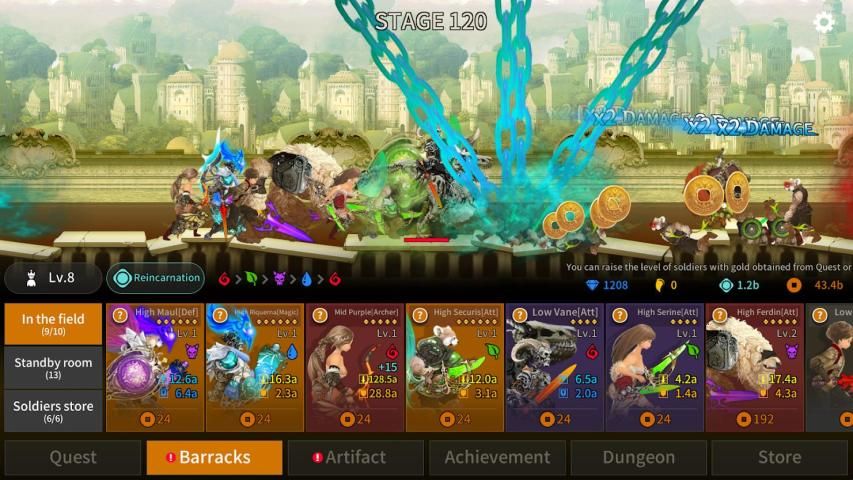Level up, reinforce, evolve, artifacts, reincarnation and grow your character infinitely.