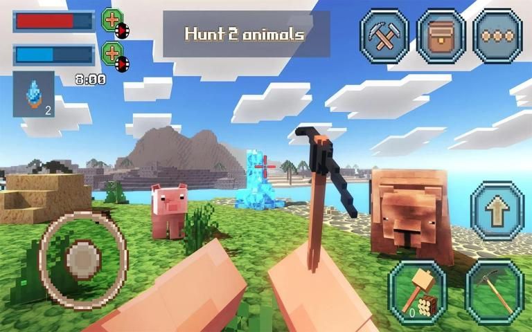 Large cubic islands are fraught with many secrets and dangers. You were in the most desolate place in this cubic world. Try to see and explore the vast expanses of islands. On your way there will be wild animals. A variety of resources will help to build a new home