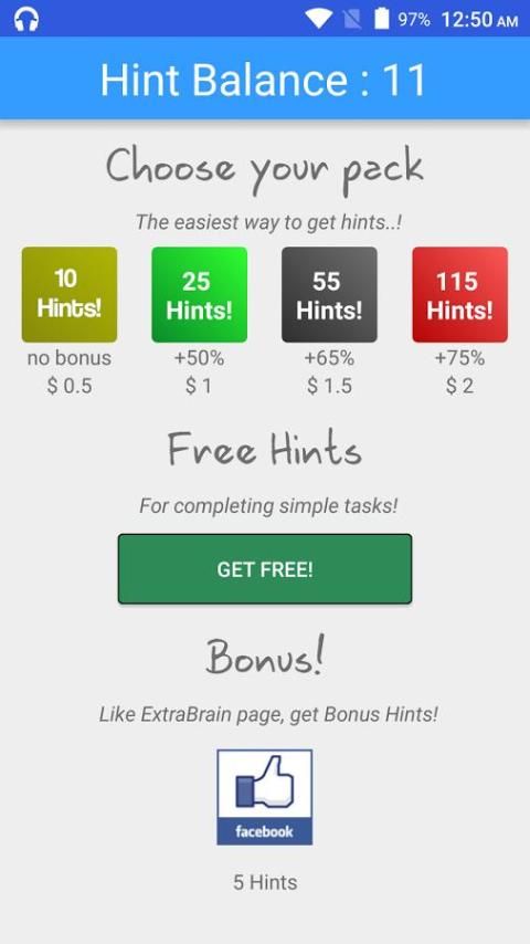 हर पहेली आप हल के लिए, आप बोनस संकेत मिलता है। मुश्किल वालों का जवाब अनलॉक करने के लिए उन संकेत का प्रयोग करें।
