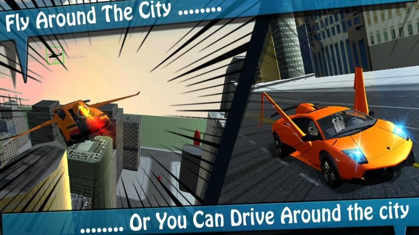 Get in the driver seat of the specially modified sports car, do amazing stunts and drifts in the city streets or off road or activate airplane flight mode and turn your fast sports car into a unique flying car!! In an instance you went from a top car driving expert to a professional airplane pilot!