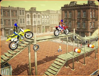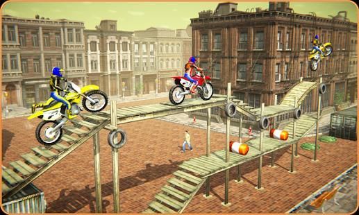 Fantastic & extremely adventurous two-wheel simulator Presents you insanely tricky and adventures stunt action. This is a crazy experience waiting for you to enjoy it. This extremely tricky motor bike stunt master welcomes you in most realistic 3d environment where you will have to perform multiple stunts while experiencing authentic physics. The User Interface features multiple controls including Acceleration, breaks, & forward and backward weight shifts to do cool stunts like rolling over and balancing your bike on difficult stunts.