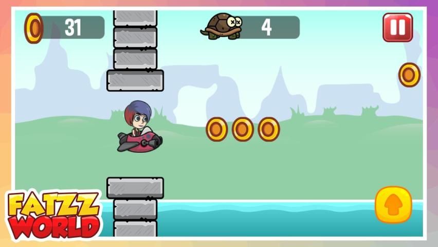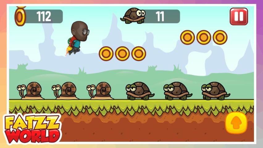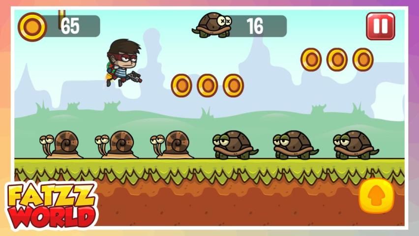 FATZZ is in the jungle fighting the enemies, help him shoot all monsters and avoid obstacles, collect coins and survive