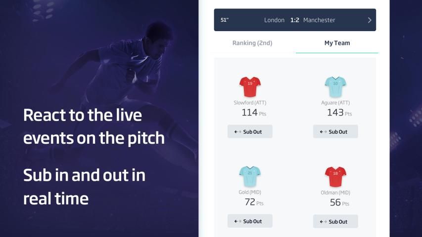 सभी कि हमारे खेल में गिना जाता है अपने शानदार लाइन अप और कुछ प्रतिभा पिच पर 4 सर्वश्रेष्ठ खिलाड़ियों हर मिनट है। इसका कारण यह है अपनी टीम के स्कोर दोनों खेल और वास्तविक मैच से उनके रहने प्रदर्शन डेटा पर आधारित है। एक लक्ष्य आप +50 अंक, लक्ष्य 10 बिंदुओं पर एक गोली मार दी और जुर्माना 30 बिंदुओं पर एक लक्ष्य देता है। लाइव मैच जीत के अंत में उच्चतम टीम स्कोर के साथ Foosio प्रबंधक। यह दैनिक काल्पनिक फुटबॉल है।