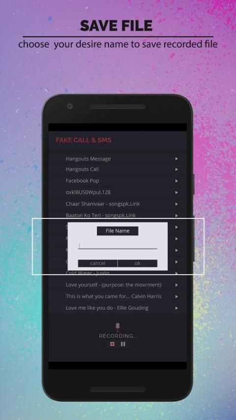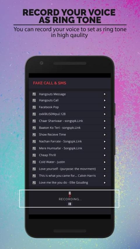 नकली कॉल और एसएमएस प्रो वास्तव में है कि वास्तविक आवाज के साथ फर्जी कॉल कर सकते हैं एक फर्जी कॉल app है। नकली कॉल मुक्त एक सॉफ्टवेयर है कि छोटे व्यापार और एसएमएस मोबाइल विपणन के लिए एसएमएस मार्केटिंग प्रदान करता नहीं है। लेकिन, भविष्य में आप छोटे व्यवसाय और एसएमएस मोबाइल विपणन के लिए एसएमएस मार्केटिंग उम्मीद कर सकते हैं। तथ्य यह है कि छोटे व्यापार और एसएमएस मोबाइल विपणन के लिए एसएमएस के विपणन के महत्व का समर्थन करता है कि हर कोई एक सेल फोन है तो क्यों एसएमएस के माध्यम से उन्हें नहीं पहुँचना चाहिए गया है। आवेदन इसलिए यह वास्तविक आवाज के साथ एक नकली फोन है अपनी आवाज रिकॉर्ड करने के लिए सक्षम बनाता है। आवेदन के लिए एक एसएमएस की सूची है जो आप इसे से सबसे अच्छा एक का चयन करने के लिए सक्षम बनाता है। एक बार जब आप एसएमएस सूची से सर्वश्रेष्ठ का चयन आप समय अपने फोन को पिंग करने के लिए सेट कर सकते हैं। एसएमएस सूची तो भविष्य में इस्तेमाल के लिए अपने फोन को बचाया है।