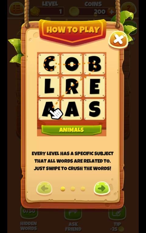- Some words are valid words but not part of the solution to complete the level. Collect them and you'll get bonus coins.
