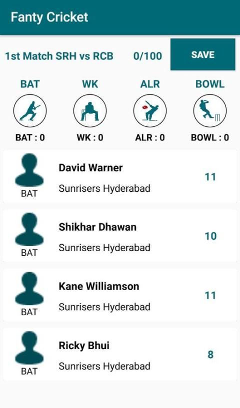 अपनी खुद की 11 चुनें (अधिकतम 5 बल्लेबाज, 1 विकेट कीपर, अधिकतम 3 सभी राउंडर, अधिकतम 5 गेंदबाजों) खिलाड़ियों को दुनिया भर से अपने मित्रों, सहकर्मी, और क्रिकेट के प्रति उत्साही के साथ प्रतिस्पर्धा करने अपनी टीम बनाने के लिए।