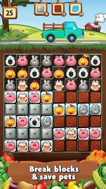 Switch and match farm pets in this divine puzzle game - Farm Day Match 3 Games for Free!
