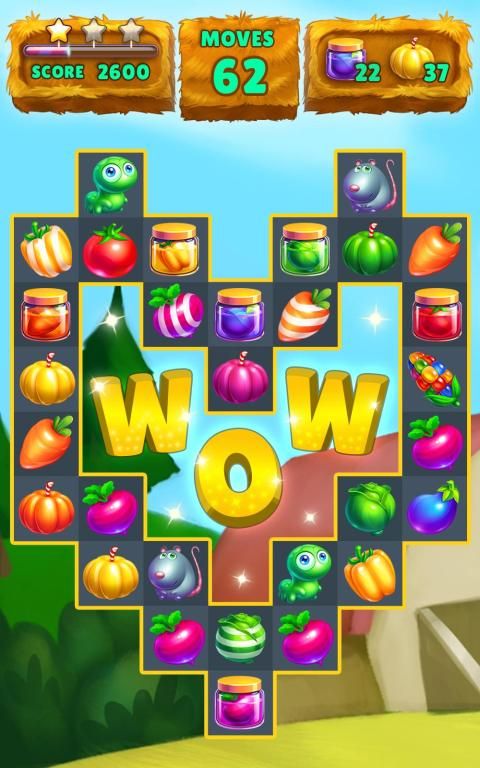 Activate your mind, swipe and crash the different vegetables such as carrots, pumpkins, and tomatoes, and solve all the fun puzzles. Matching veggies is the best way to relax and pass the time! Play now, pop items, and discover cool puzzles and quests, clear the board and collect amazing rewards.