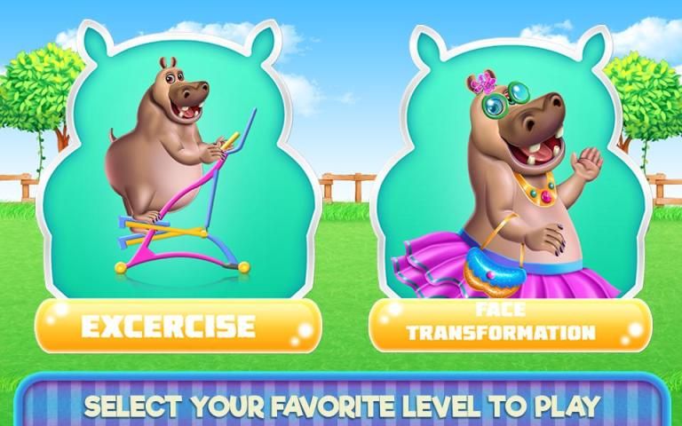 Do not miss the opportunity one of these animal games have for you! Take a shot and prove that you can handle any situation you might be put in and even better you can succeed the tasks that are assigned to you with no difficulties. It all sounds compromising, but this could be your chance to see the way you might influence the lifestyle of a hippo. Although they a lot of veggies it seems like their race has some problem with the overweight. Your job is to bring him into shape after a session with you and not only, you will have the chance to perform facial treatments, design and assemble nice looks. Basically you will be her personal trainer and if the sport activity is not convincing you there are many other things you could try. This fit game comes with 4 outdoor activities where you need to follow the given instructions to perform each type of exercise, then you will return to the gym where you will use the devices that will help the hippo lose her weight and have a nice toned body. Burn calories and move right to the part that implies the facial makeover. Clean the spot, apply the first mask, rub the skin and add the face cream. When you are done the make up will follow and if you think that was fun, wait until to reach the dressing up point. Get a nice outfit and make sure you highlight the new shape of her body with a nice pair of shoes and a fancy skirt.