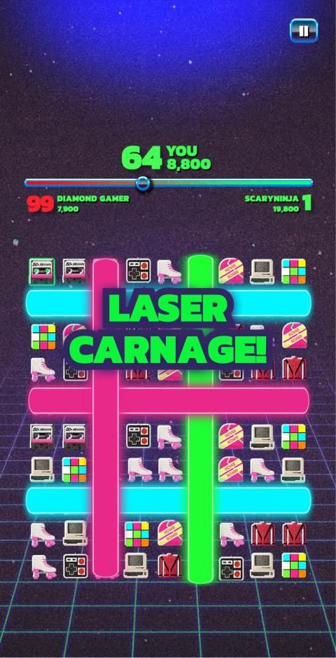 twist! Focusing on speed, strategy and quick-thinking, Fight Back to the 80’s requires you to match 3 or more 80’s themed pop culture icons!