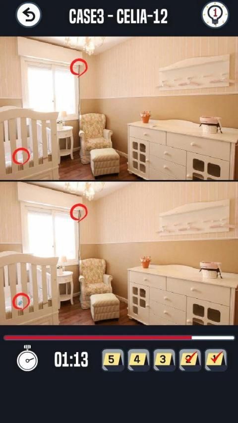 ● Spot the 3~5 differences in 1min 30 sec to crack the case.