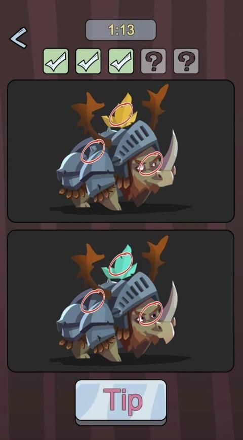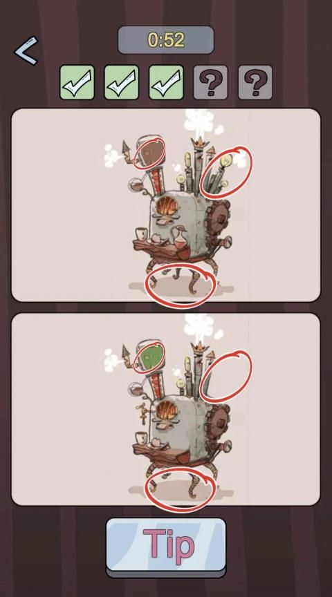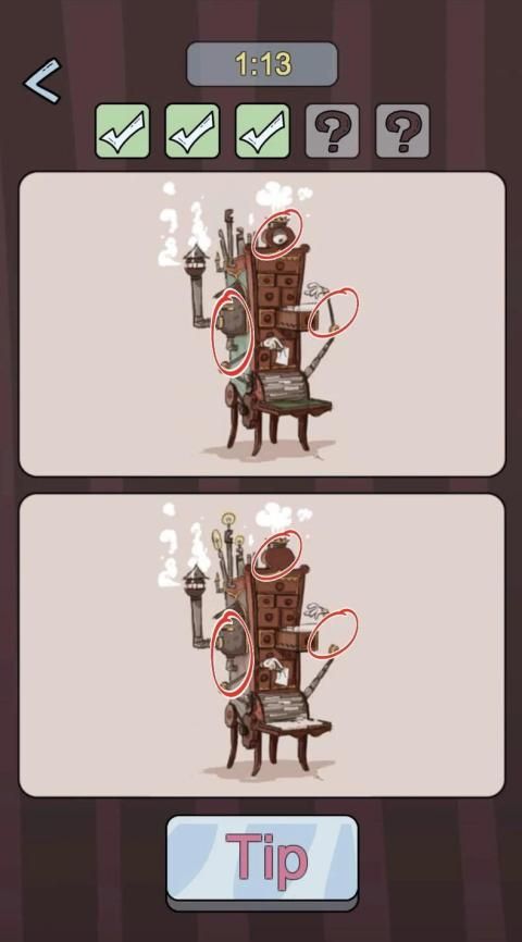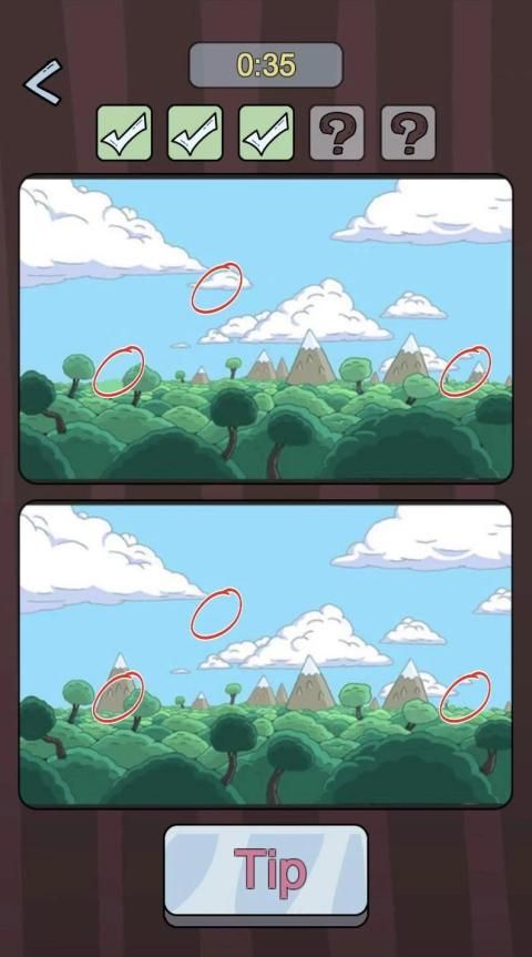 2. Just click on the different parts of the two pictures. There are 5 different points in each level, and all the differences in the current picture can be successfully entered into the next level, until all the different points in each level can be found.