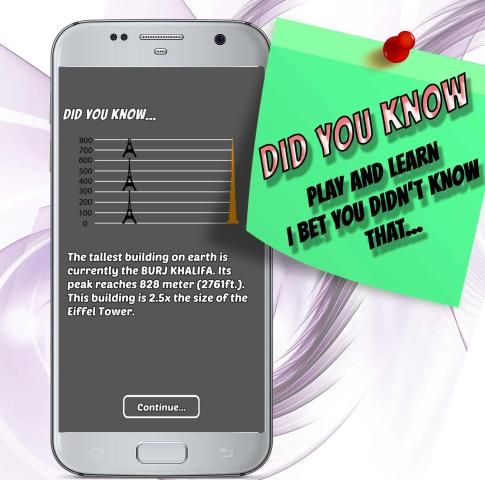 Train your brain finding differences and find out more about facts you wouldn't believe it can be true. We create extra "did you know..." levels for your satisfaction.