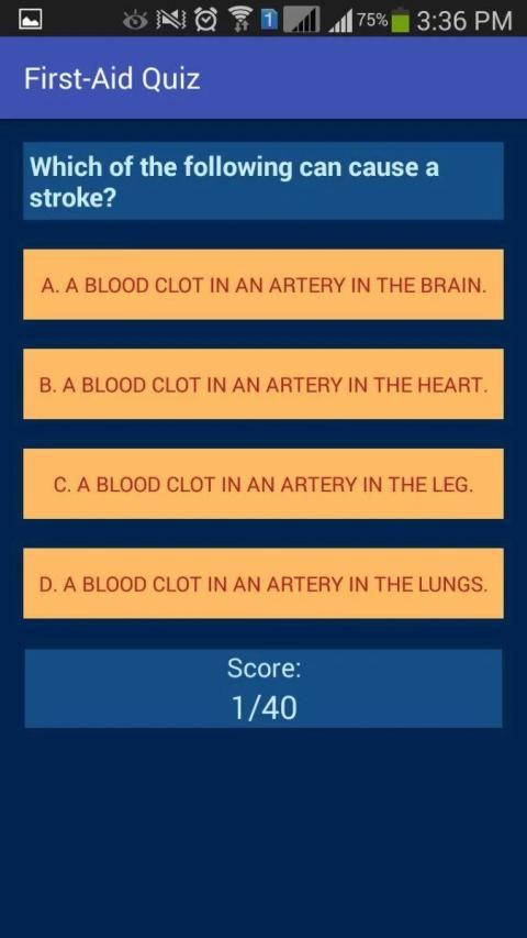 Knowledge is power. Test your Knowledge! First-Aid Quiz is a multiple choice health related quiz game. Test and refresh your knowledge on all things first-aid with this fun and intuitive first-aid quiz game.