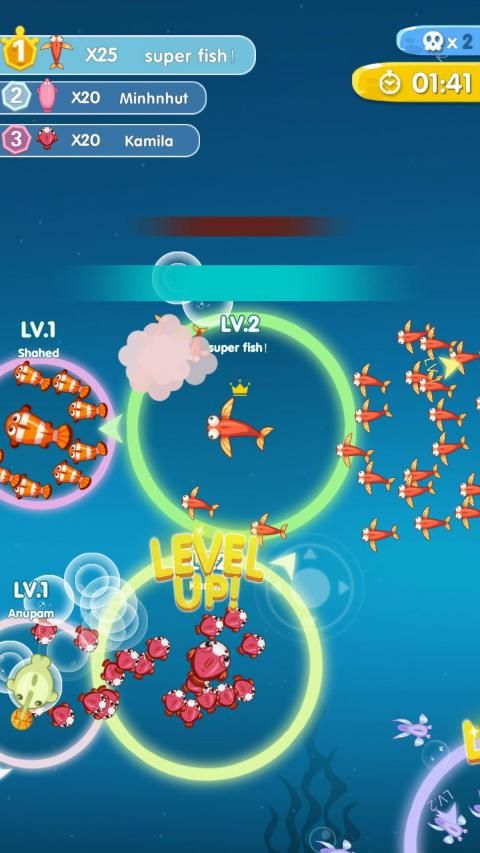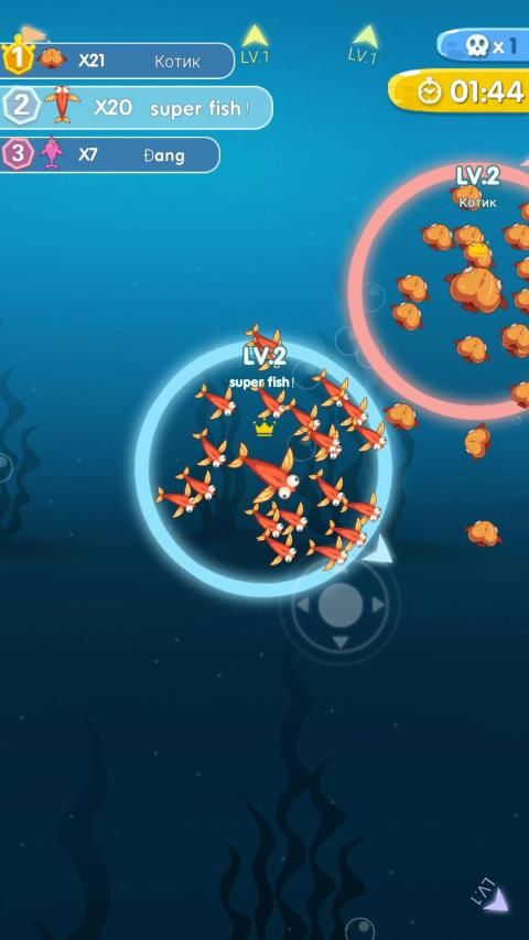 Gather homeless fish. Annex your opponents' group. Become the biggest fish group in world!