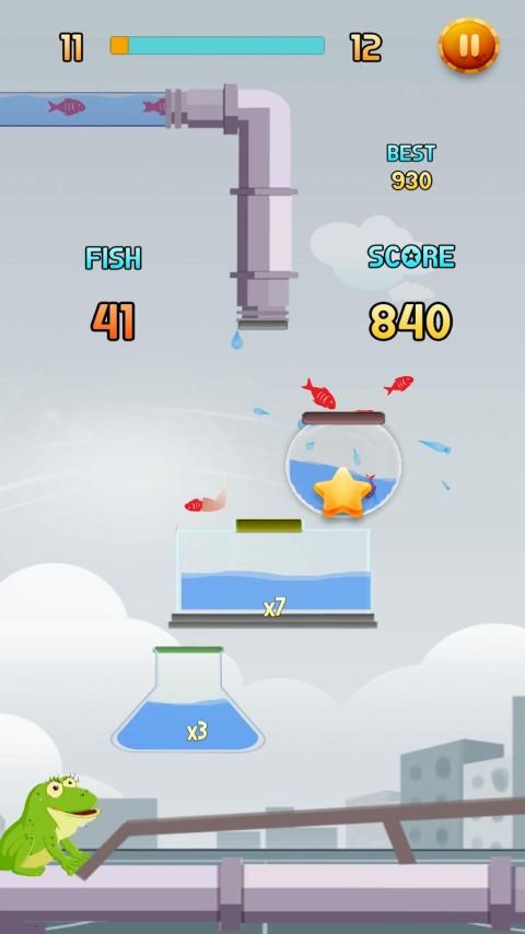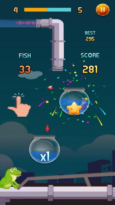 Fish are wating for your helping. The aim of the game is to fill the aquarium by tapping on the screen and releasing the fish which stuck in the tank. If 50 fish miss the aquarium, the game is over.