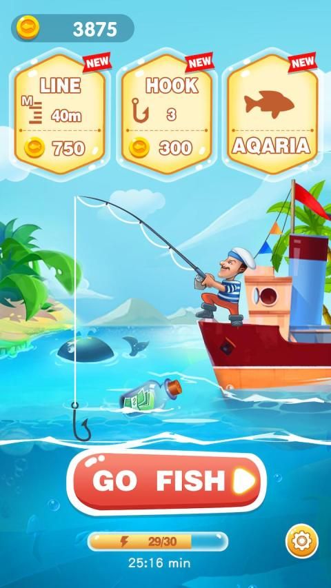 अधिक खजाना जार खोजने के लिए और अधिक कमाने के लिए अपने मछली पकड़ने की छड़ और हुक का उपयोग करें!