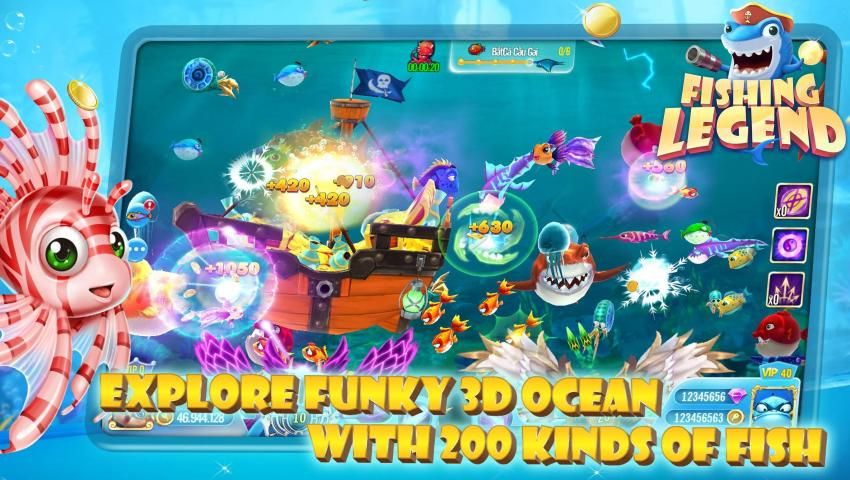 Fishing Legend - Online fish shooting game. Play as if you were shooting fish with actual coins. Large player community. Play game to receive gifts. Features many types of unique beautiful fish in gorgerous 3D graphic and yet not graphically demanding. Proud to be the best looking Fish Shooting game today. Easy to play, easy to gain gifts. Download fish shooting game now.