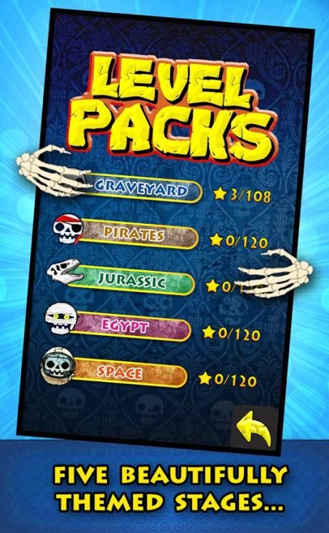 ★ 5 अद्वितीय चरणों थीम के माध्यम से चलायें: कब्रिस्तान, समुद्री डाकू, जुरासिक, प्राचीन मिस्र और बाह्य अंतरिक्ष।