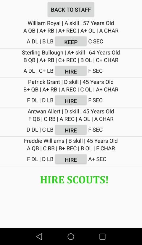 * Not only should you be mindful of your player's overalls in this football sim game, but also the player's injury, work ethic, character and leadership ratings.