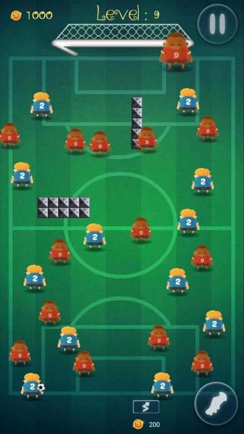 FootballLineはサッカーボールをパスしたりシュッティングするゲームです。ゲーム中、相手チームプレイヤーは一定範囲をディフェンスする、この範囲内のボールは止められます、プレイヤーは観察し最適の進行路線を見つけ、プレイヤー同士でパスすることで相手の止めから避けます、フォワードのキックによってシュッティングします。ステージを進めば、相手プレイヤー以外に壁などの障害物も出てきます、プレイヤー同士のパス以外に、ステージの中にある転送ドアを使って相手プレイヤーや障害物から避けます。
