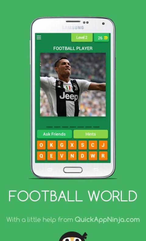 Football World - Football Quiz, is a quiz measure your knowledge of Football. Guess the TOP Football Player, Guess the Football Manager, Guess The Club Logo, and Guess The Home base Stadium + (Bonuss Guess a Legend Football Player)