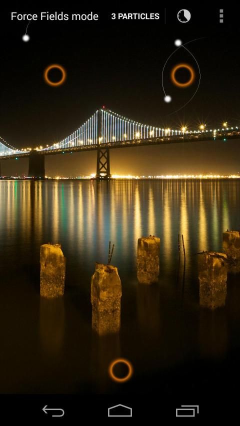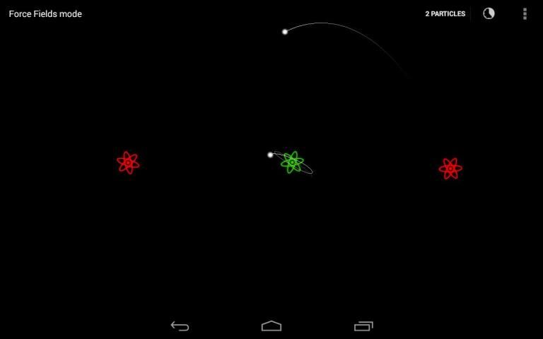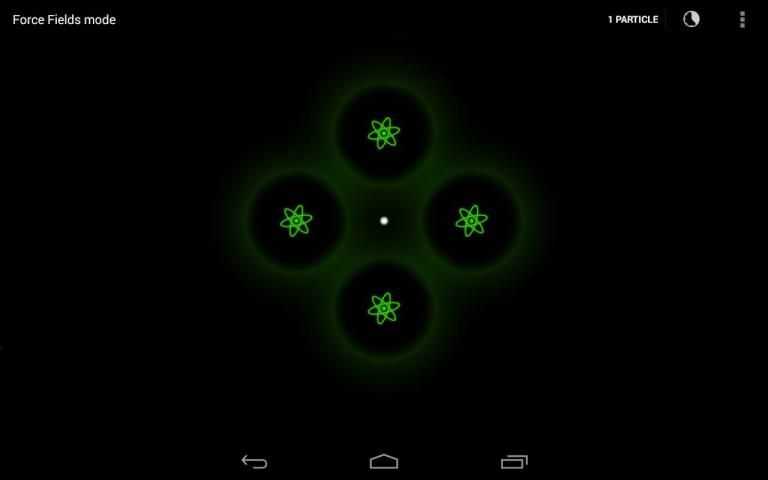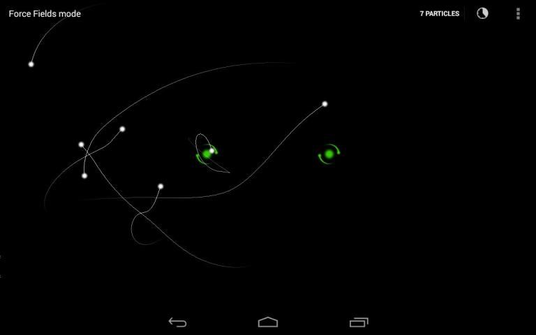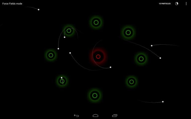 - Force fields: touching anywhere on the screen adds a force field and from the menu option you can add up to 10 particles.