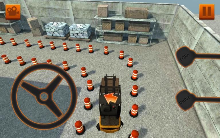 बहुत यथार्थवादी भौतिकी सिमुलेशन के साथ फोर्कलिफ्ट नियंत्रण. आप निर्माण स्थल में स्तरों को खत्म करने के लिए एक ट्रक में कुछ कार्गो छोड़ने की जरूरत है.