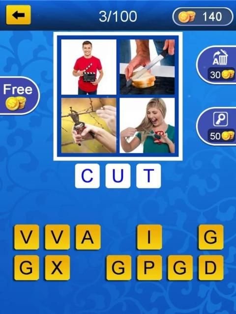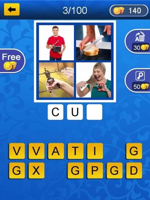 puzzle game. in this game you develop and train your logic. 4 Pics hide the meaning of one word, can you guess this word?